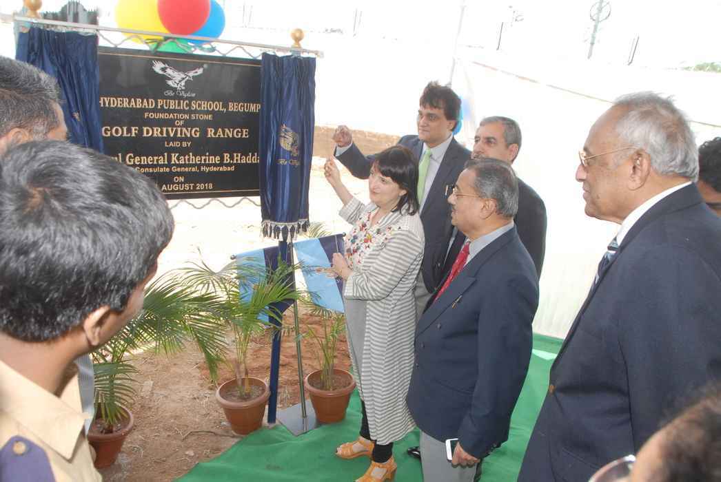 Inauguration of E-Library, Hospital and Foundation stone of golf driving range by Consu general Katherine Hadda, 30-8-18